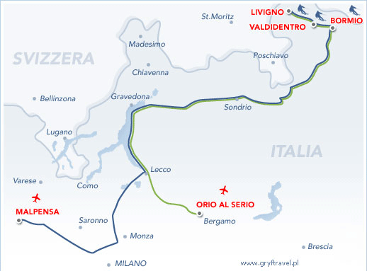 LivignoExpress jeździ do: Livigno, Semogo Valdidentro, Santa Caterina Valfurva, Bormio.